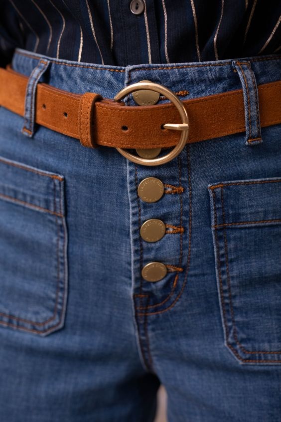 Omschrijving:• Riem gemaakt in een Italiaanse werkplaats• Buitenkant van leer met krokodilleneffect• Echt lederen voering• Messing gesp met verouderde gouden afwerking• Sluiting met een gesp• Breedte: 3cmFitting:S: 80cmM: 85cmL: 90cm