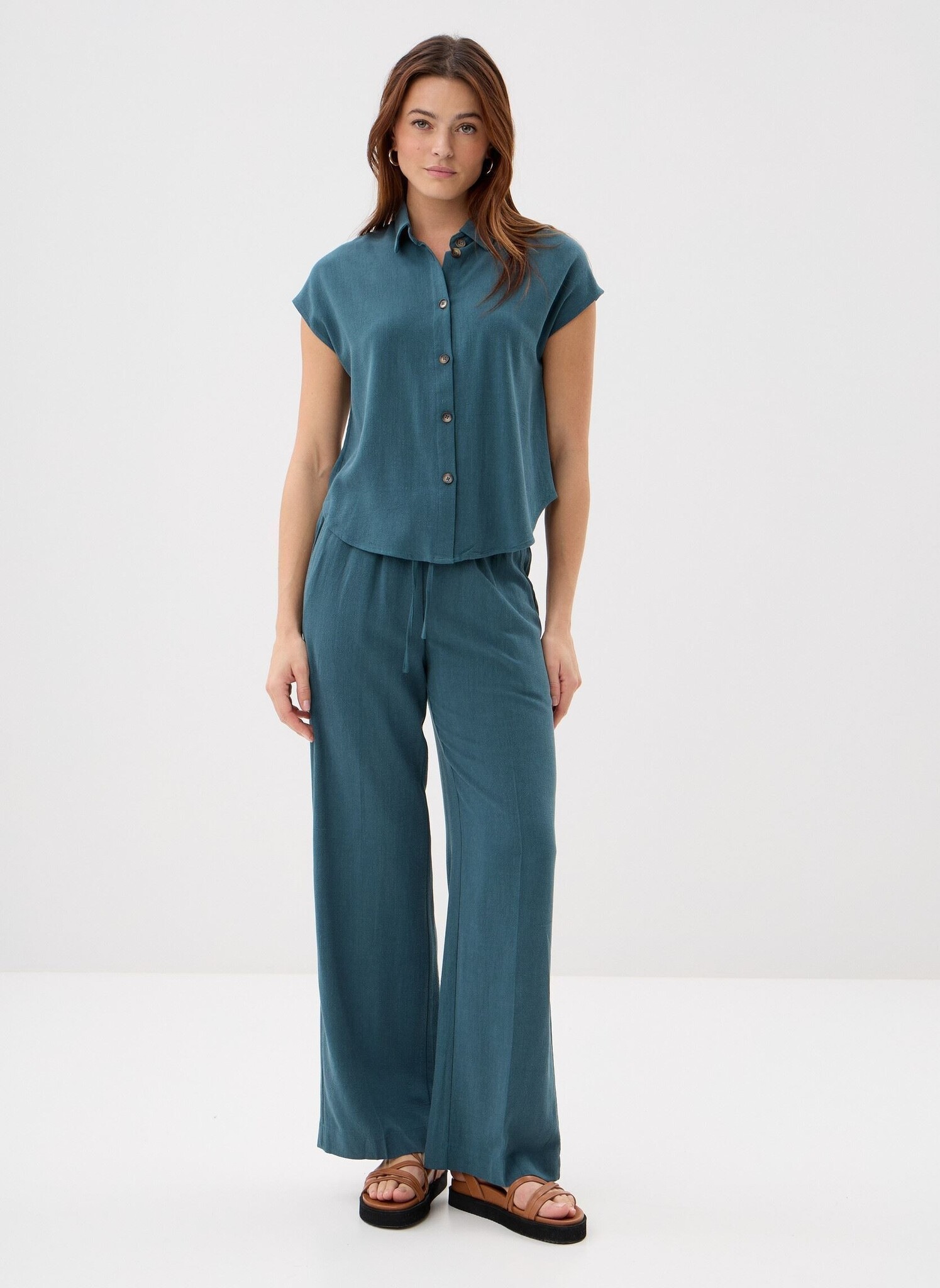 Raven tie waist loose pants - petrol