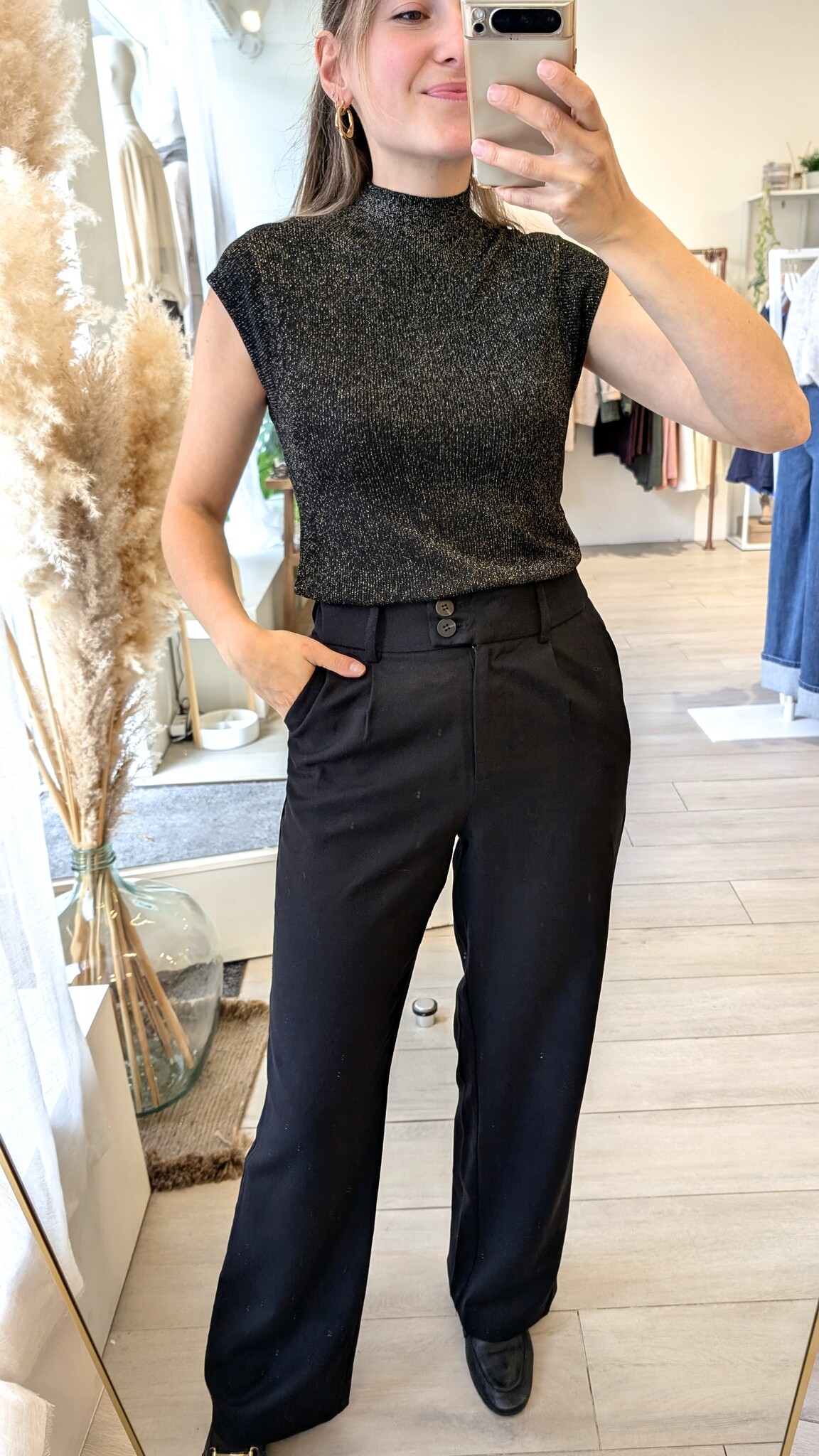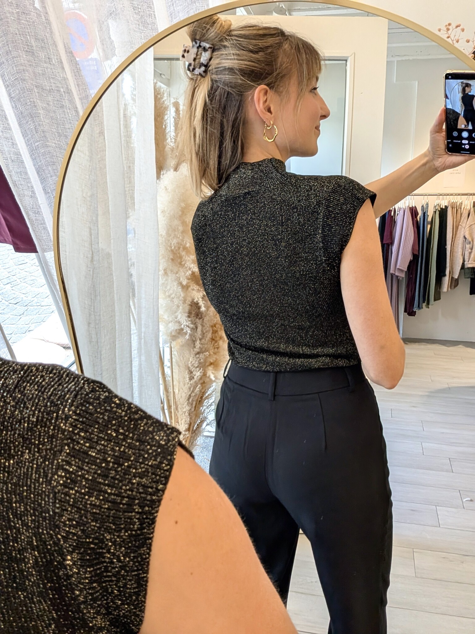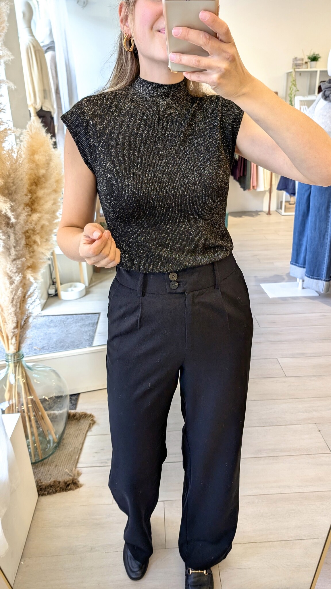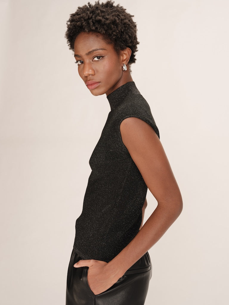 talisman crew neck sleeveless glitter top - black/gold