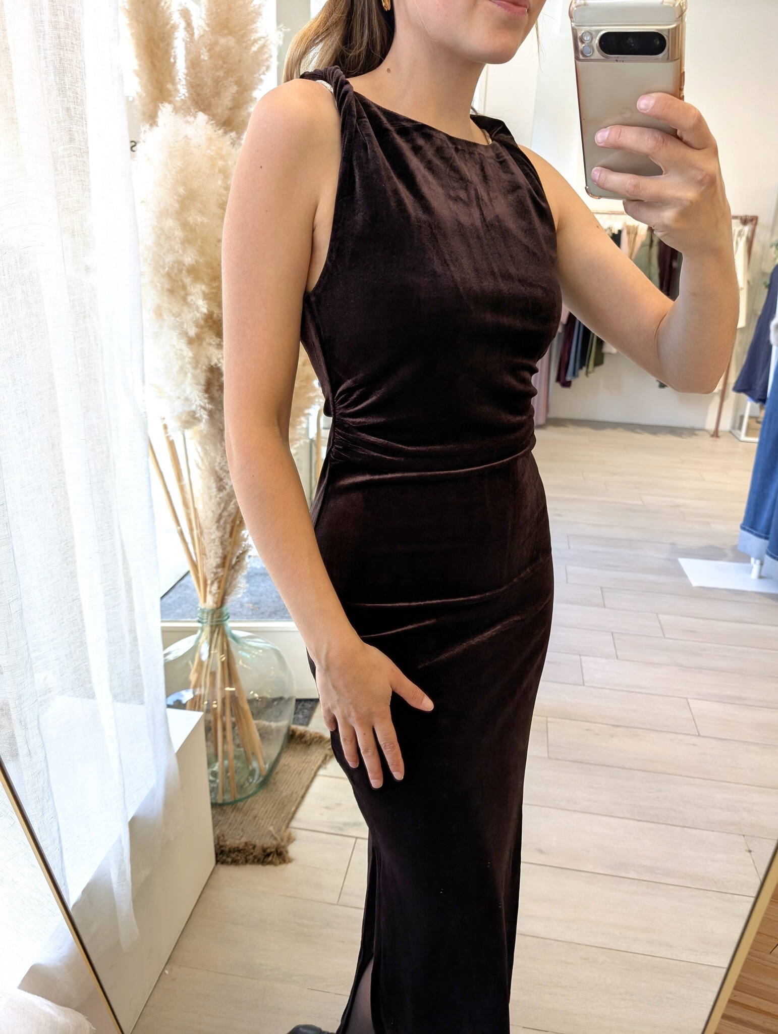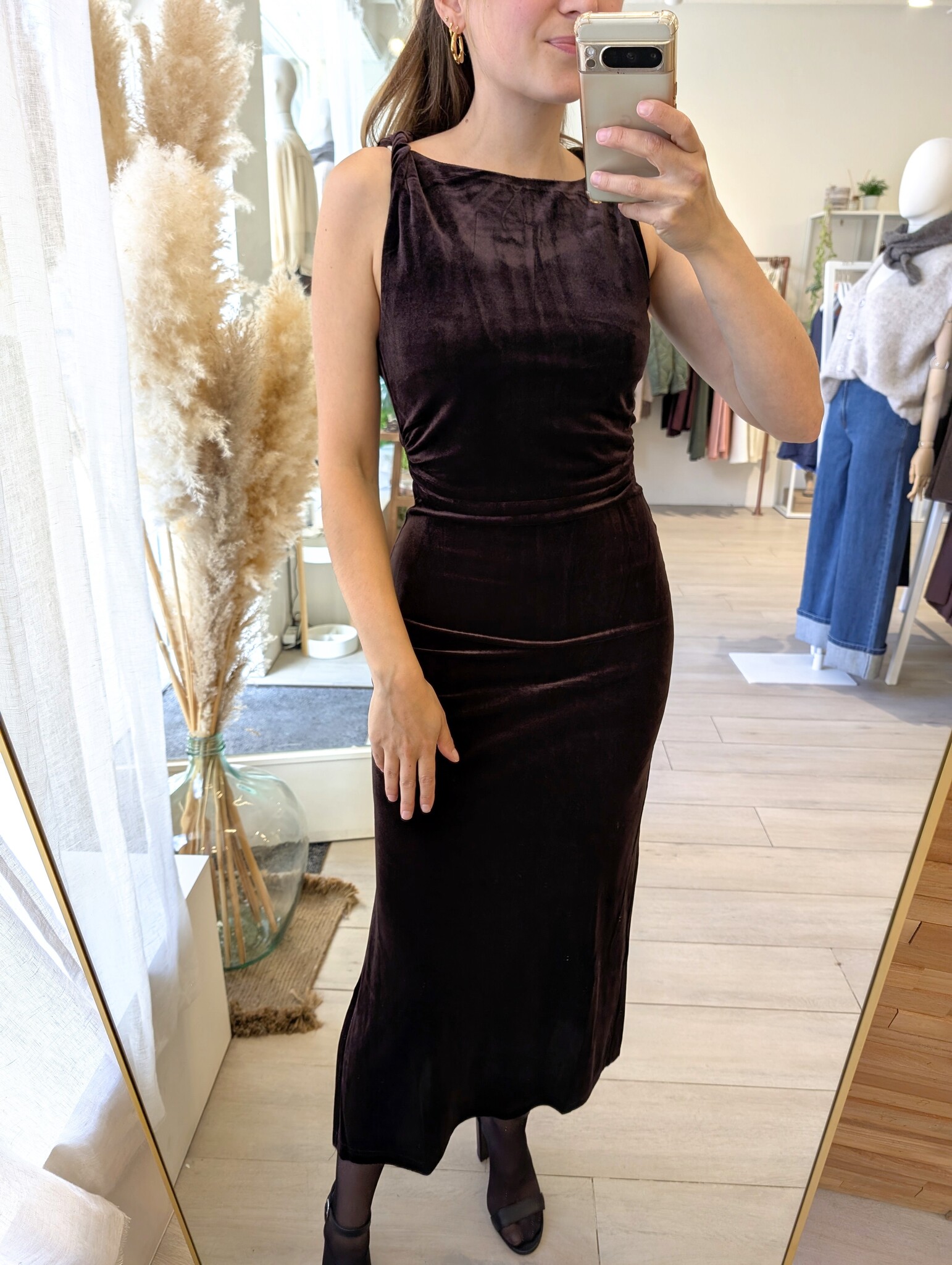 trivoli velvet bodycon dress - brown red