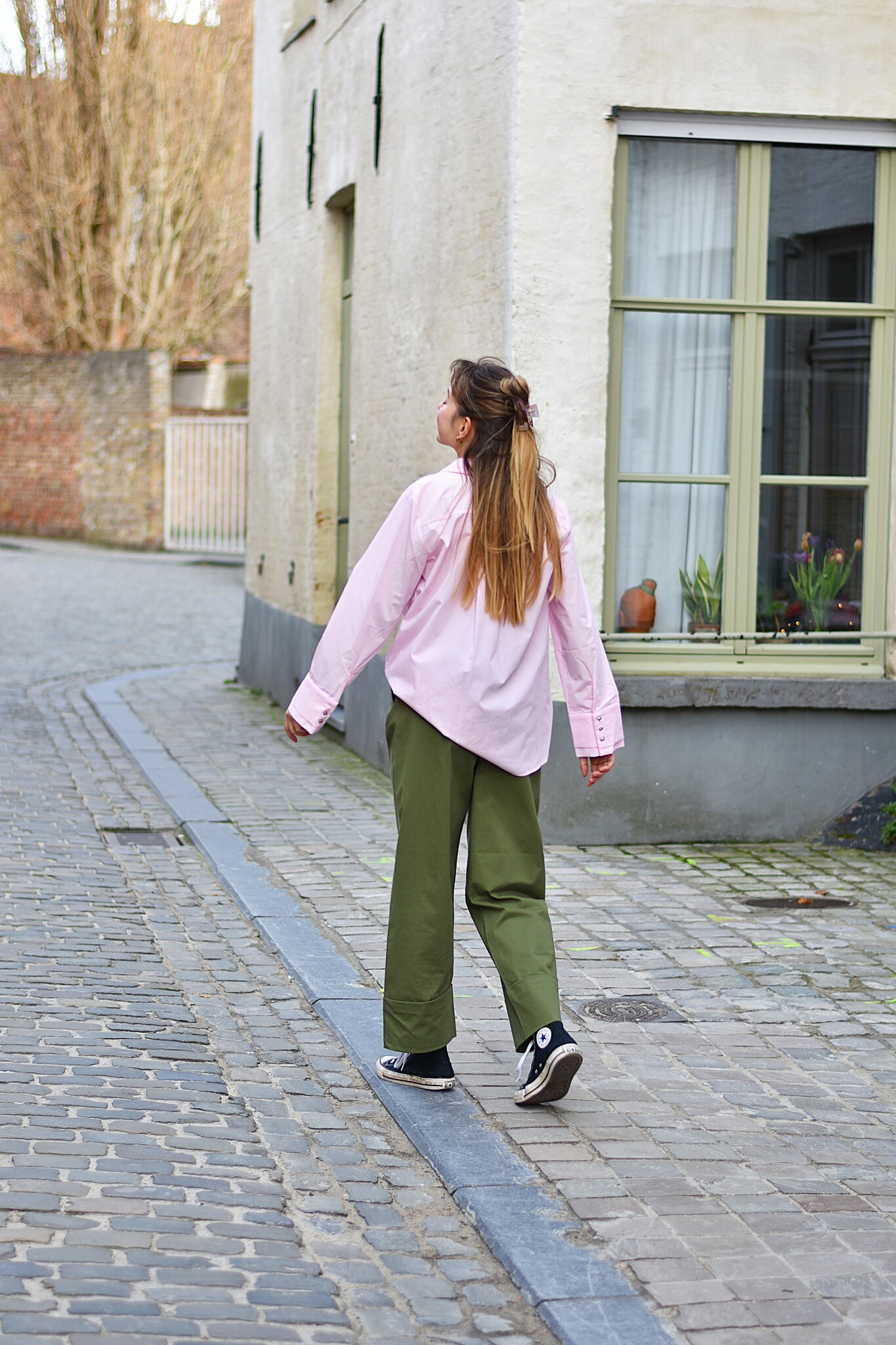 visimone fold cigarette pants - khaki