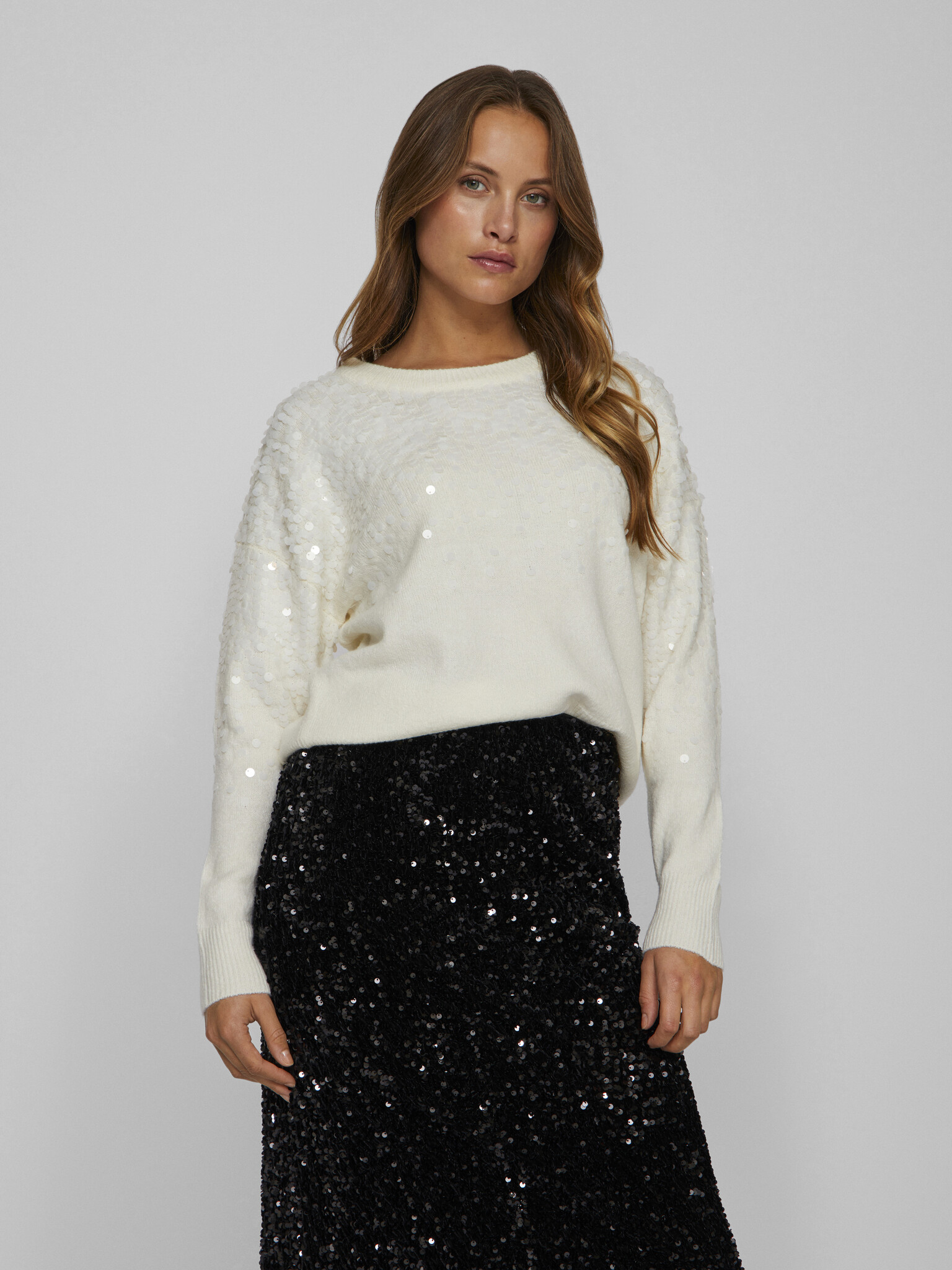 visiquin o-neck swaeter - white sequins
