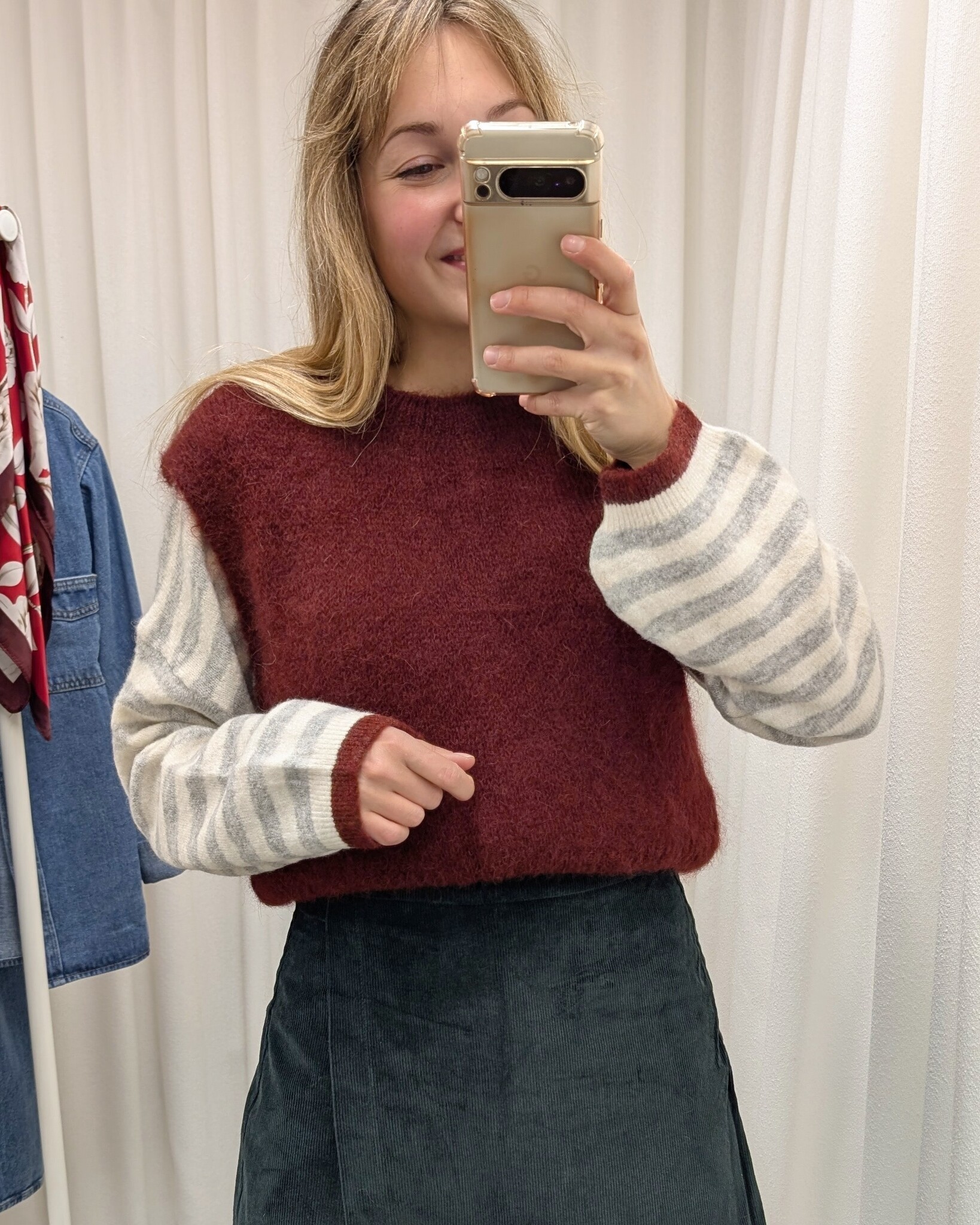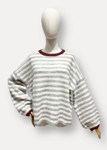 Zoé stripe burgundy collar swaeter - grey/white